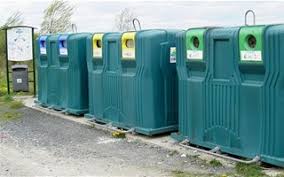 Dans le conteneur à bande verte : on y dépose les bouteilles en verre, les pots et bocaux.