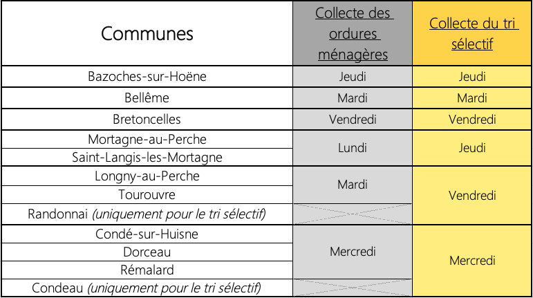 Communes concernées et les jours de collecte (retrouvez toutes ces informations par commune dans l’encadré à gauche) :