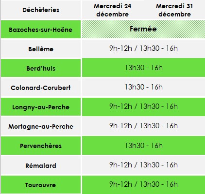 Les déchèteries fermeront à 16h au lieu de 17h le mercredi 24 décmebre 2025 et le mercredi 31 décembre 2025.